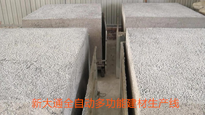 生產(chǎn)該種產(chǎn)品,工藝流程不同的地方就是在生產(chǎn)泡沫混凝土砌塊的基礎(chǔ)上,增加下料分流裝置,將料漿分別流入苯板與苯板之間的縫隙;增加一個(gè)固定苯板的裝置,當(dāng)發(fā)泡料將灌注到模具里面發(fā)滿之后,就要將固定苯板的裝置提出模具;該種生產(chǎn)工藝既可以采用化學(xué)發(fā)泡的方法,也可以采用物理發(fā)泡的方式。